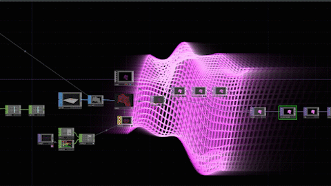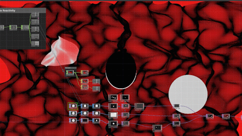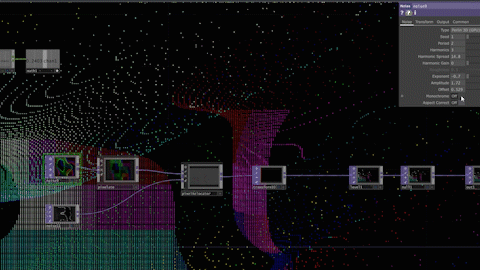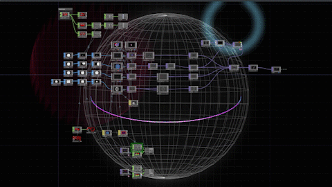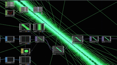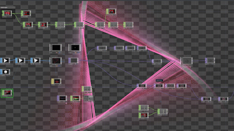 My weapon of choice for this undertaking was TouchDesigner, a node-based editor for live visuals. TD isn't an After Effects-esque 'create a render pipeline and export to a file'-type program, but instead a live I/O experience, seemingly used most often in live installations and performances.